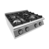 Gas burners having the same operation capacity for all gas types, each burner with pilot group and thermocouple, and stainless stell oil collecting trays under the burners,